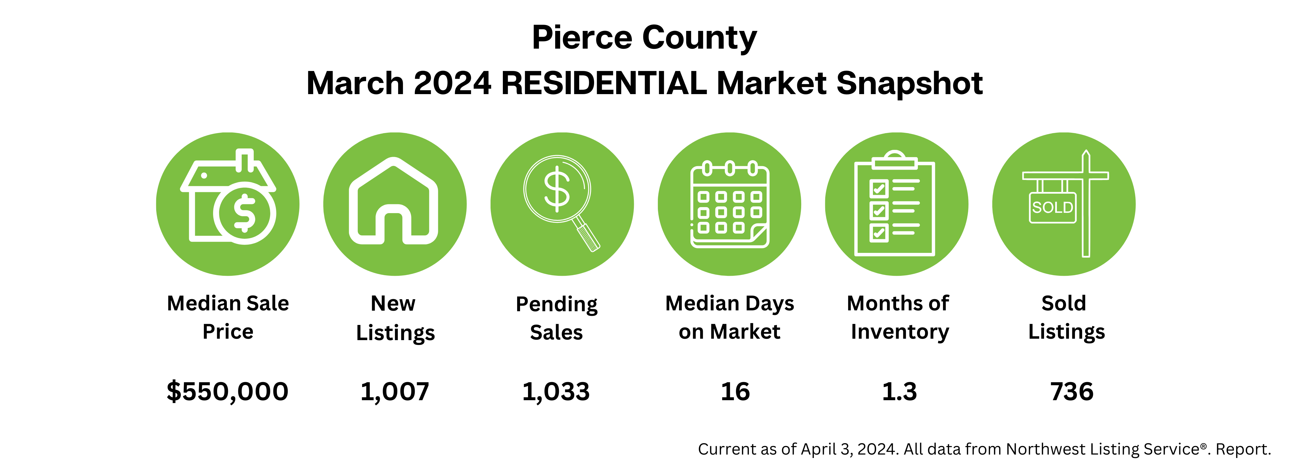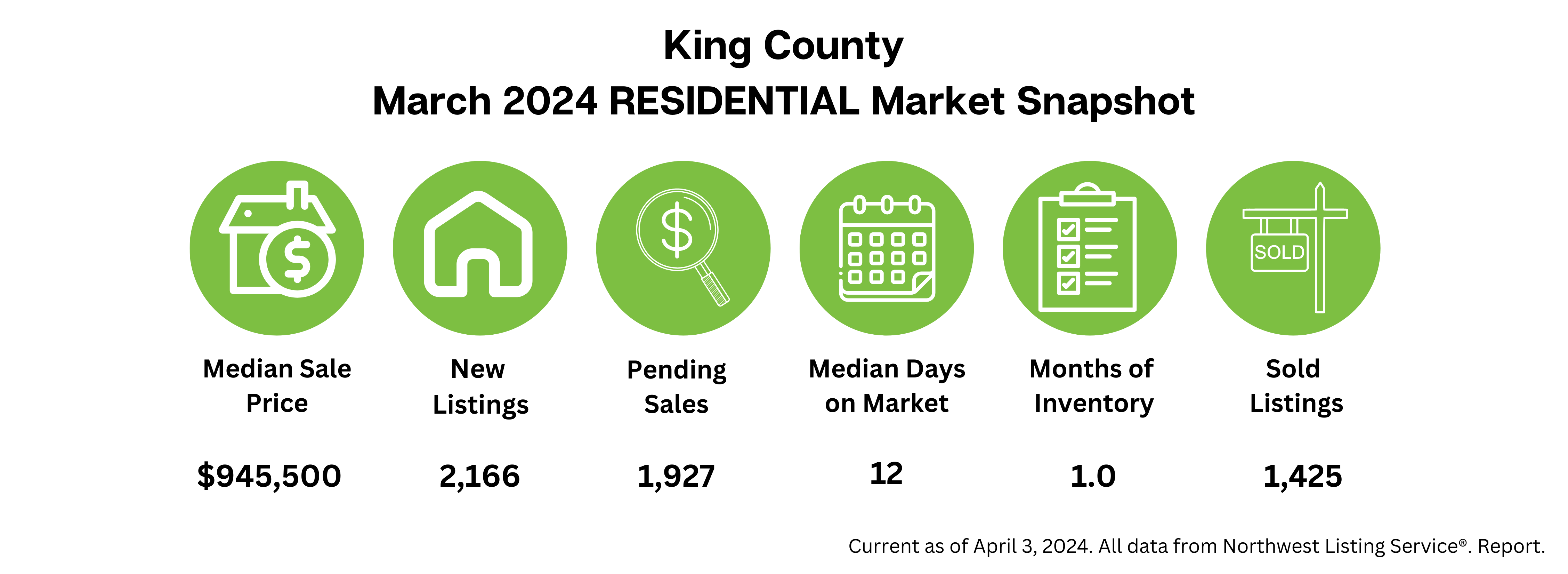 Here's a quick look at what's happening in Washington's housing market based on the Northwest MLS's March 2024 snapshot: